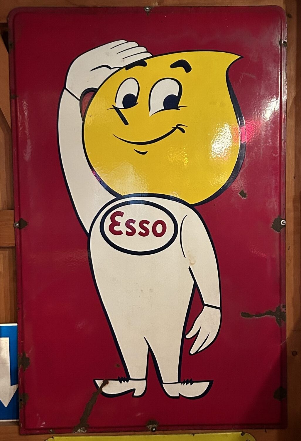 Grosses Esso Männli Emailschild aus Österreich, ca. aus den 50er Jahren.