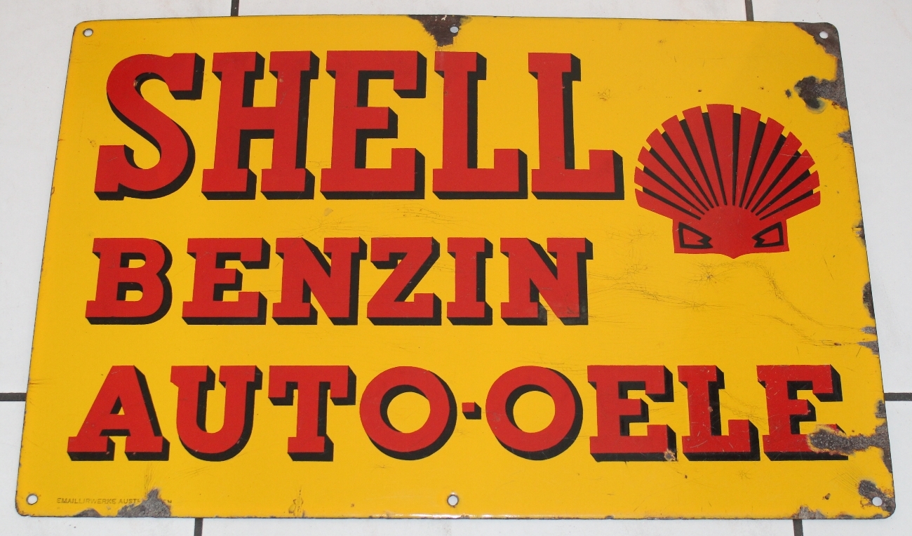 Shell Benzin Emailschild aus Österreich, ca. aus den 20er Jahren, Masse: 40 x 60cm.