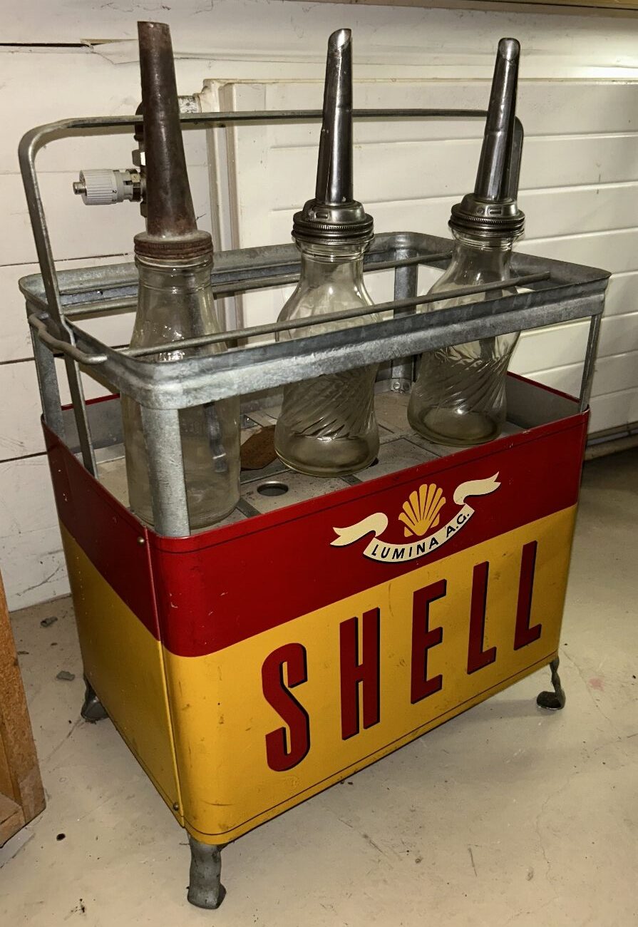 Shell Auto-Oele Oelflaschen-Rack aus der Schweiz,von 1926 .