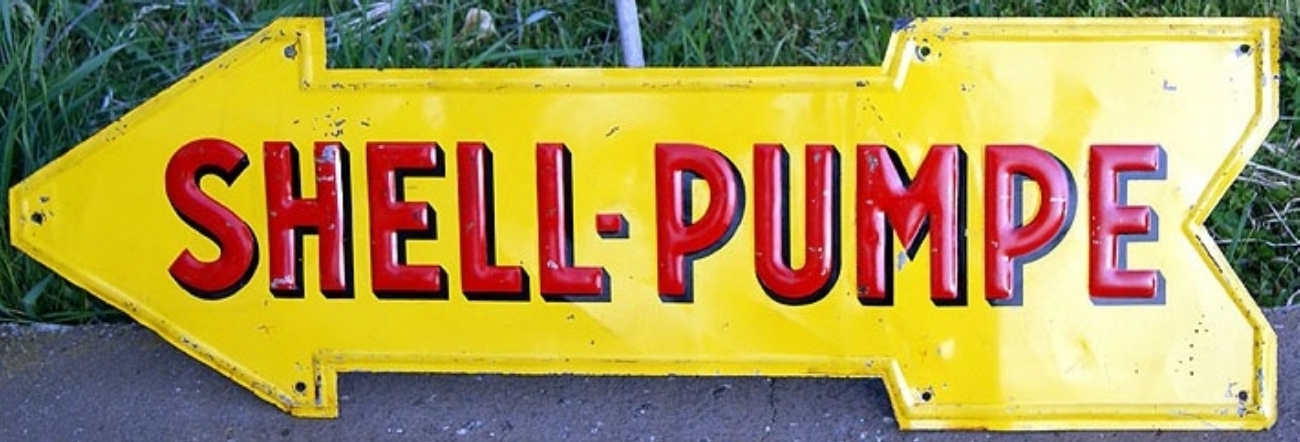 Shell Pumpe Blechschild aus der schweiz, ca. aus den 30er Jahren, Masse: 35 x 108cm.