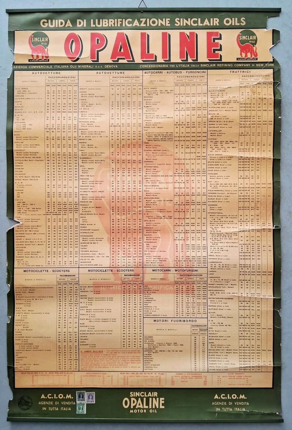 Sinclair Opaline Oeltabelle aus Italien, ca. aus den 50er Jahren.