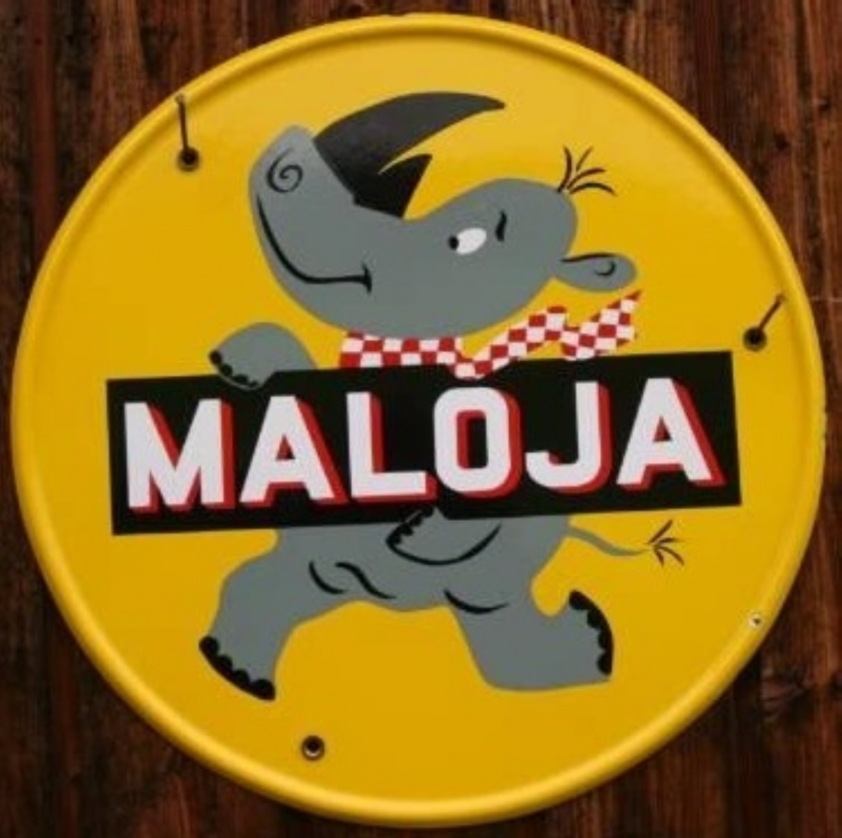 Maloja Pneu Emailschild aus der Schweiz, ca. aus den 40er Jahren, Durchmesser: 42cm.