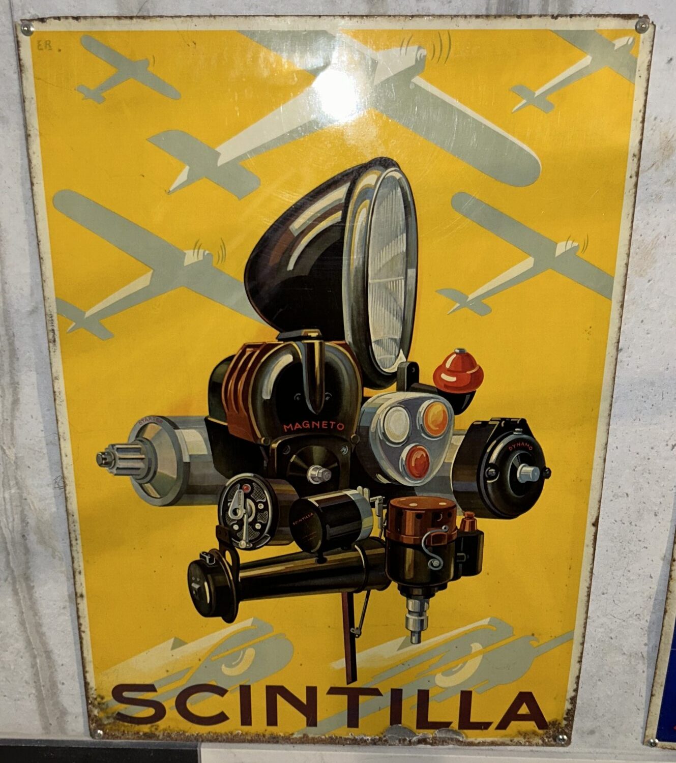 Scintilla Blechschild aus der Schweiz, ca. aus den 20er Jahren, Masse: 46 x 64cm.